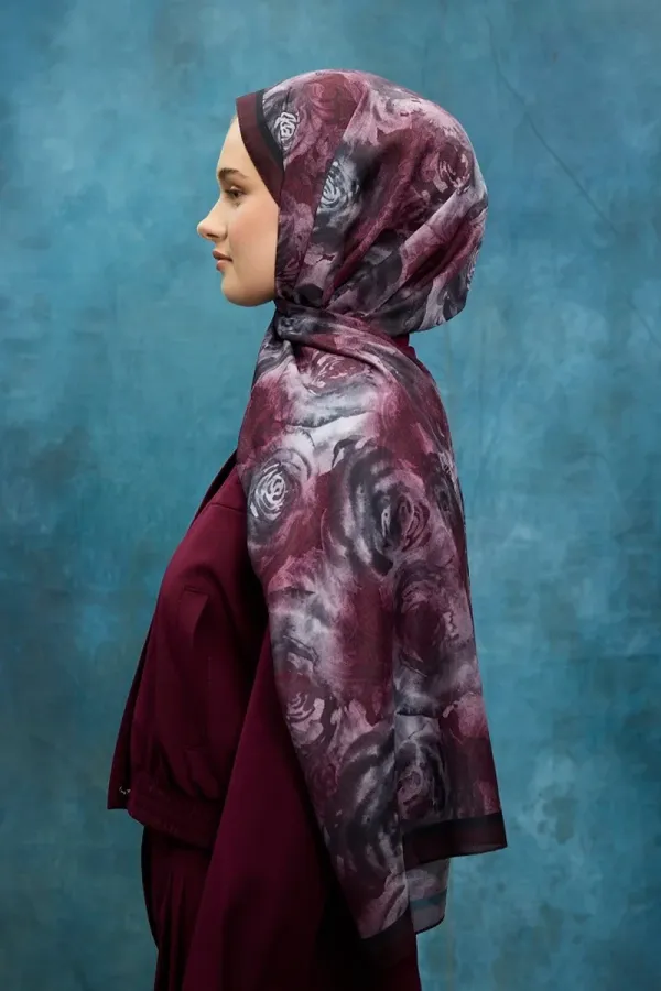 Gül Desen Soft Şal - Mor