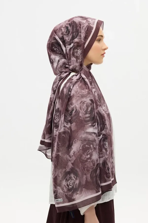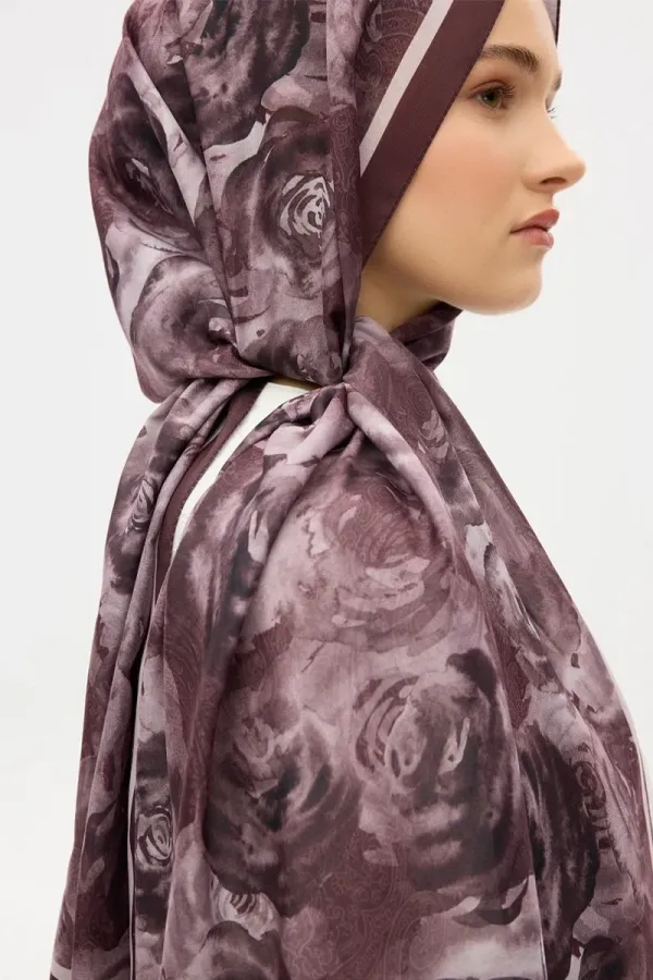 Gül Desen Soft Şal - Mürdüm