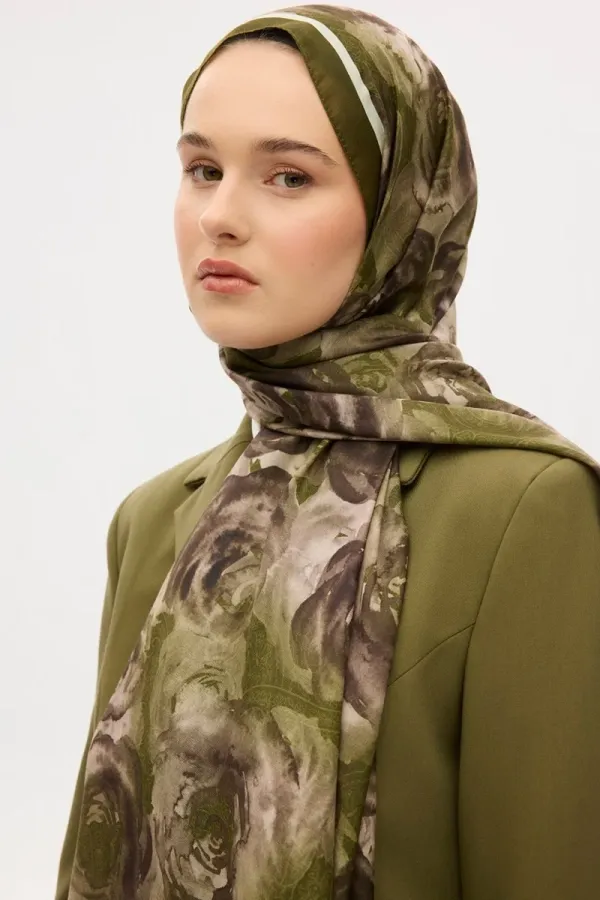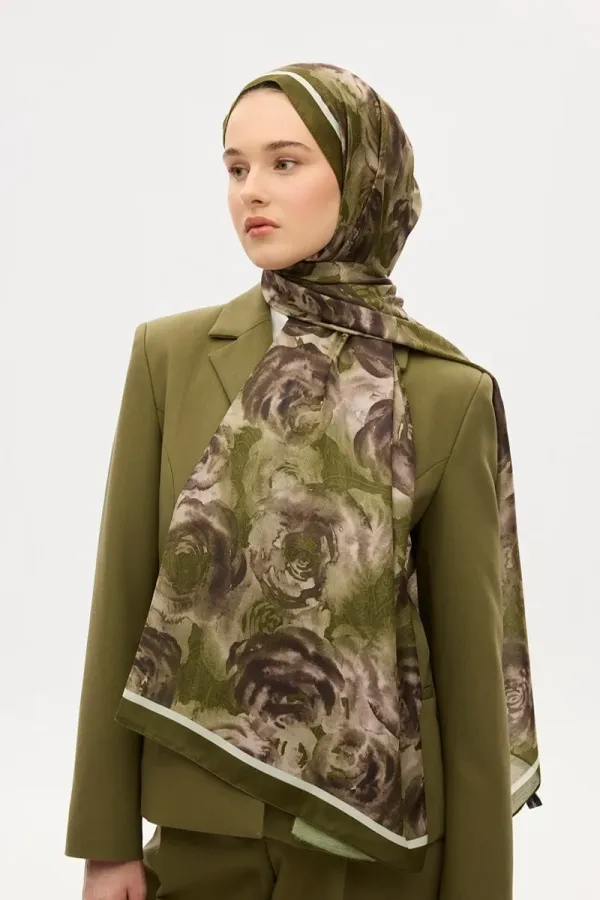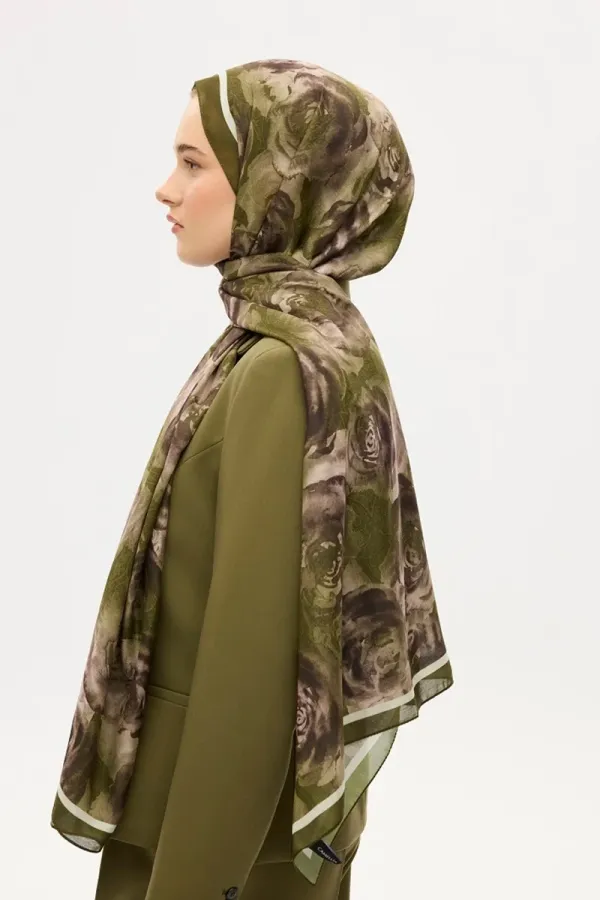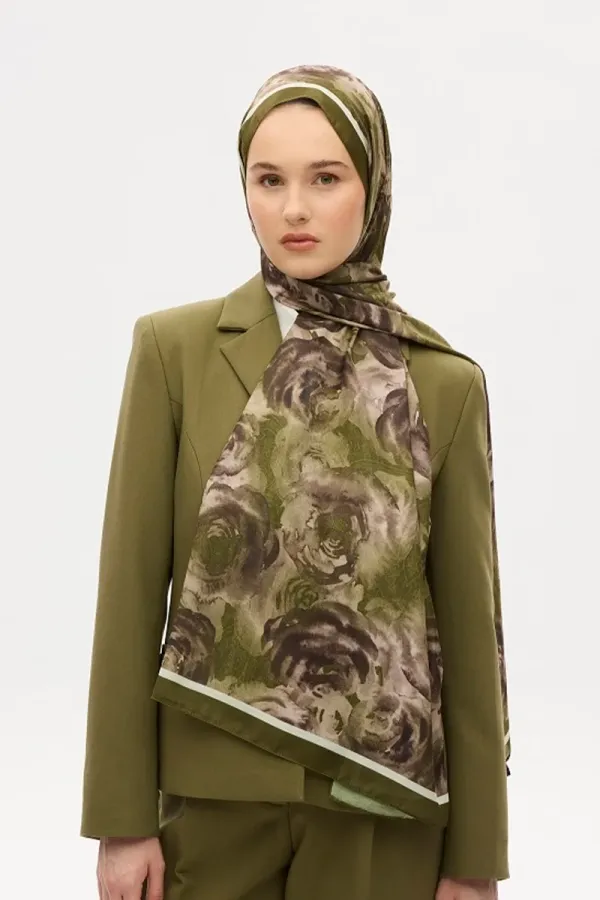 Gül Desen Soft Şal - Yeşil